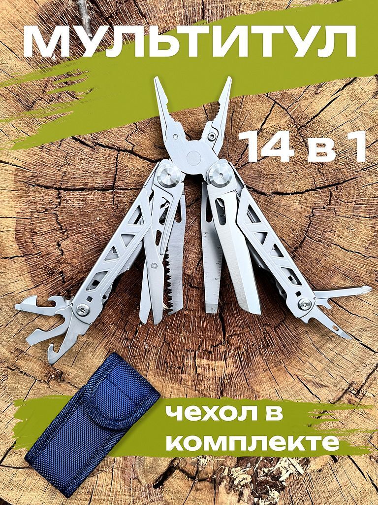 Мультитул 14 в 1: Многофункциональный инструмент c 14 небольшими инструментами, включая плоскогубцы с длинным носиком, захват для болтов, кусачки для мягкой и твердой проволоки, плоские, маленькие и большие отвертки, крестообразную отвертку, открывалки для бутылок и банок, напильник, линейку, скребок, ножницы и нож.