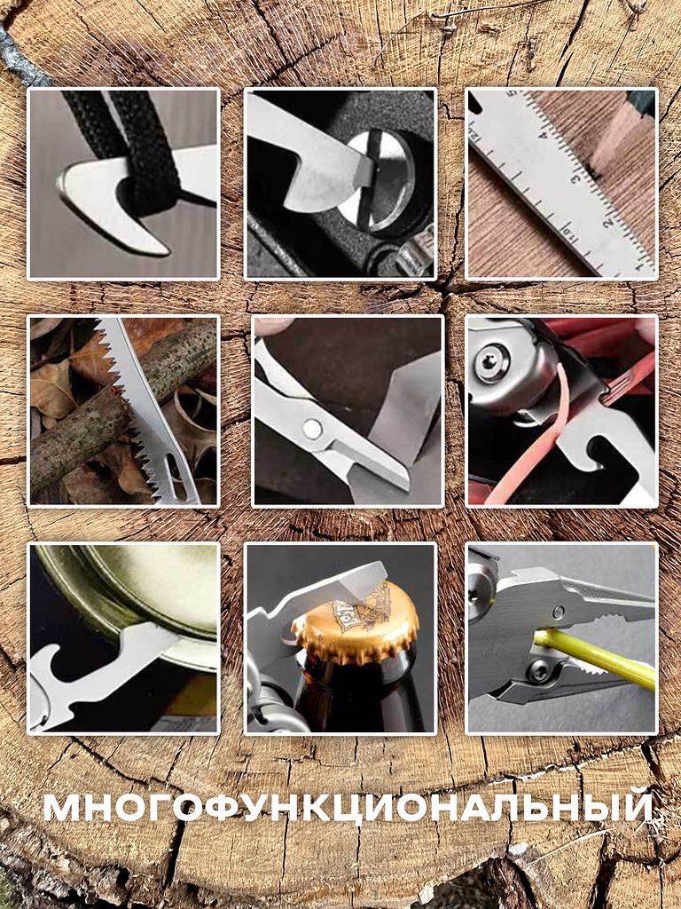 Легко и удобно: Тактический мультитул прост в использовании. Все аксессуары имеют отверстия или выступы нужного размера. Вы можете легко открыть целевой аксессуар и использовать его, не открывая весь инструмент.