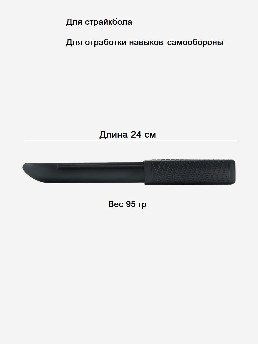 Тренировочный резиновый нож, предназначен для тренировок по отработке ударов и приемов разоружения, для занятий ножевым боем, отработки навыков самообороны. Резиновый нож для тренировок подходит для рукопашного боя, айкидо и других видов единоборств, направленных на самооборону. Также нож отлично подойдет для страйкбола. Нож тренировочный выполнен из мягкой резины, так что порезаться или пораниться им невозможно. Размеры: Длина - 24 см; Ширина - 2,8 см; Высота - 1,9 см; Вес - 95 гр. Нож тренировочный, Нож резиновый, Нож для тренировок, Нож из резины, Нож для страйкбола, Тренировочный нож для ножевого боя, Резиновый нож для тренировок, Нож.