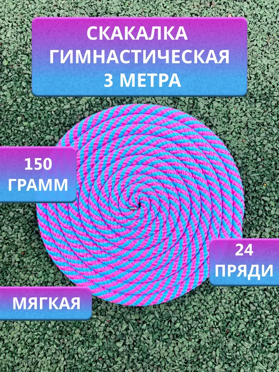 Скакалка 2,5 метра, вес - 105гр, 3 метра, вес - 125гр. Диаметр скакалки 1 см. Гимнастическая скакалка утяжеленная представляет собой спортивный снаряд, который имеет вид шнура без ручек. Скакалка очень важный тренировочный инвентарь. Вместо ручек концы шнура завязываются в узел или обжигаются. Разработана для занятий художественной гимнастикой согласно специфическим требованиям этого вида спорта. Веревку для гимнастики можно адаптировать к любому росту. Вес обеспечивает оптимальную маневренность. Веревка является базовым снарядом. С ее помощью выполняются различные махи, броски, переводы, круги скакалкой и прыжки. Скакалка - отличный фитнес тренажер. Высокое качество материала, длительный срок эксплуатации. Основные правила ухода: - не рекомендуем стирать спортивный снаряд; - избавляйтесь от пота на скакалке сразу после тренировки; - не храните скакалку долго в месте повышенной влажности; - промокшую от воды или пота гимнастическую скакалку вытирайте кусочком сухой ткани; - сушите скакалку в тени; - храните скакалку в сухом месте; - для транспортировки используйте чехол или рюкзак. Также скакалка подойдет как спортивный инвентарь и для других видов спорта, таких как танцы, футбол, единоборства, командные виды спорта.